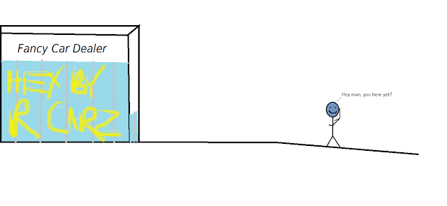 Actually, yesterday I took my first test drive of a car ever. So get this; I pull into the dealership, and I'm on the phone when I get out of my car, right? I'm like 20 feet from the door into the dealership, standing there while I finish my phone conversation before I go in.